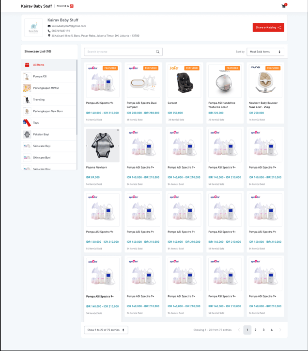 When customers visit your Digital Catalog, they can view: