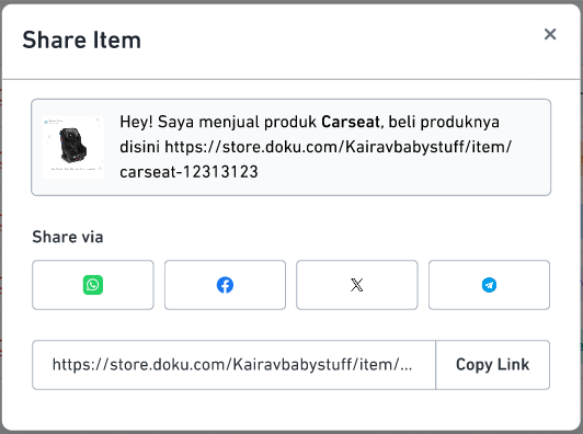 From here, you can easily share your catalogue or item with customers through multiple official channels.