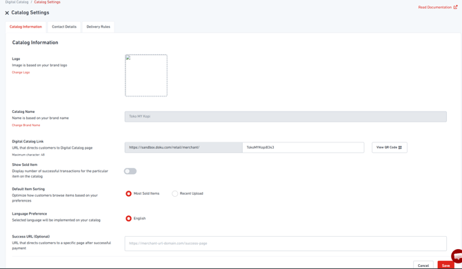 You can find the Digital Catalog settings under “Accept Payments” > “Digital Catalogue” in your new DOKU dashboard.