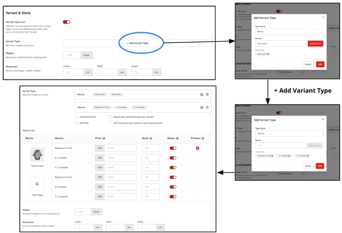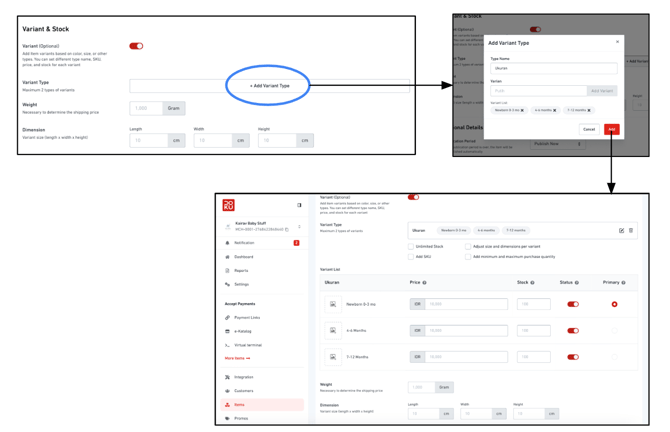 2. Apop-up will appear—enter the Variant Type Name (e.g. Size, Color)