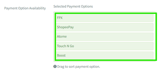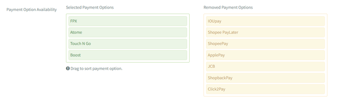 5. In the 'Payment Option Availability' section, simply drag and drop the payment methods you wish to enable or disable on your checkout page, as steps shown in section I above.